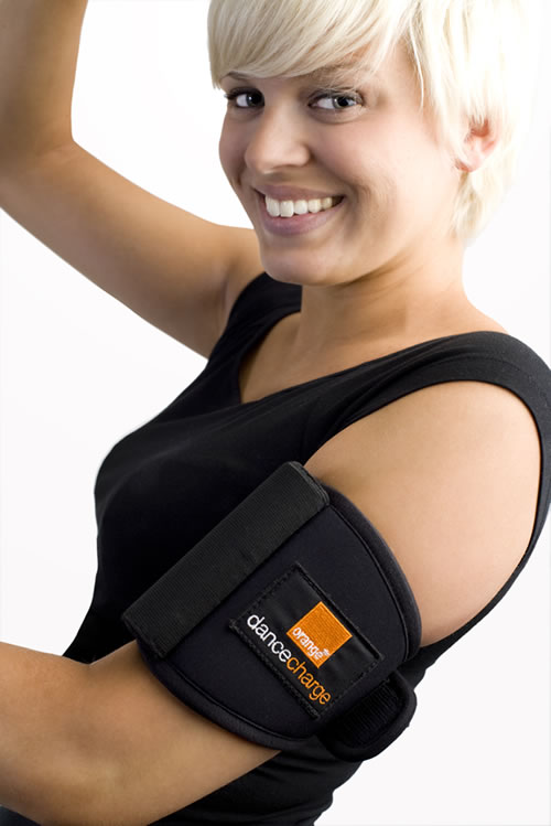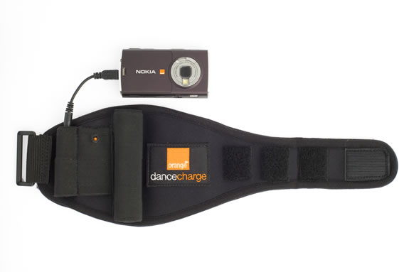 Orange and GotWind, dealing with recharging energies, has announced their latest prototype of chargers, which uses the motion energy of the human body for charging the phone. Dance Charge, pictured below, is a working prototype, which uses kinetic energy, gained by dancing or other intensive motion, for charging. Those interested can test it between June 27 and 29 at the Glastonbury Festival. The 108 x 63.5 large accessory, weighing 180 grams, comes with a neoprene band that can be attached to the biceps, so it has an effect similar to a sporty MP3 player. The device, built of magnets, coils and weights, gains kinetic energy from the hand's motion, just like some watches do.