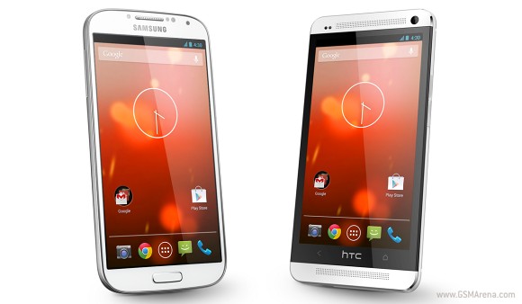 A korábbi várakozásoknak megfelelően a Google online áruházában is elérhetővé vált a Samsung Galaxy S4 és a HTC One módosítatlan Android felülettel rendelkező kiadása. Az elsősorban fejlesztőket célzó, „Nexus-szerű” kiadásokban azonban nem csak a gyártói kezelőfelület, hanem a mellékelt alkalmazások és egyedi tartalmak is hiányoznak a repertoárból, így rengeteg alapértelmezett szolgáltatás válhat elérhetetlenné. A Galaxy S4 „Google” kiadása kártyafüggetlenül 649 dolláros áron vált elérhetővé, míg a HTC csúcsmodellje ennél 50 dollárral kevesebbért is elérhető.