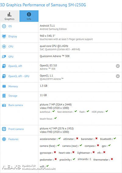Az idei variáns sem lépte át a kategória korlátait, viszont a Super AMOLED kijelző maradt, illetve a 4,7 hüvelykes kijelzővel kompaktabb is lett. Az 1 GB rendszermemória és a maximum 1,3 GHz-es órajelű központi feldolgozóegység még a 30 ezer forintos kategóriában is kissé visszafogott. A Geekbench viszont egy új Galaxy J2-t futtatott, amelybe már 1,5 GB operatív memória és egy frissebb, 1,4 GHz-es Snapdragon 400-as lapka került. A kijelző mérete a tavalyi modellhez hasonlóan 5 hüvelykre nőtt, ahogy a belső tárhely is duplázódott (16 GB). A kicsit erősebb variáns 7.1.1-es rendszerrel várható, feltehetően továbbra is Indiában.