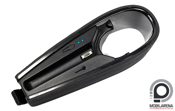Az iCentre által biztosított tesztpéldány ritkán látott felszereltséggel büszkélkedhet. A három méretű füldugó és a fül mögé helyezhető, opcionálisan használható tartó mellett kapunk egy microUSB-s töltőkábelt, egy szivargyújtóba helyezhető USB-töltőt, valamint egy hordozható töltődokkolót, mely ledes indokátorfényekkel is el van látva. Ebbe bármikor bepattinthatjuk a headsetet, ha tölteni szeretnénk azt; a Voyager Edge önmagában 6 óra folyamatos beszélgetést tesz lehetővé, de a teljesen feltöltött dokkoló még közel kétszer maximumra tudja pumpálni a kapacitást, 10-11 óra extra beszélgetést lehetővé téve. Egyébként mindkét eszköznél odafigyeltek a dizájnra, a rendkívül diszkrét headset csupán 9 grammot nyom, a töltőállomás pedig a már említett ledekkel mutatja egyrészt saját magának, másrészt a headsetnek a töltését. A fények körül egyébként érintésérzékeny terület található, amihez ha hozzáérünk, felvillannak a kékes világítótestek, aminek következtében akarva-akaratlanul is folyamatosan piszkáltam a töltőállomást. Egy darabka high-tech.