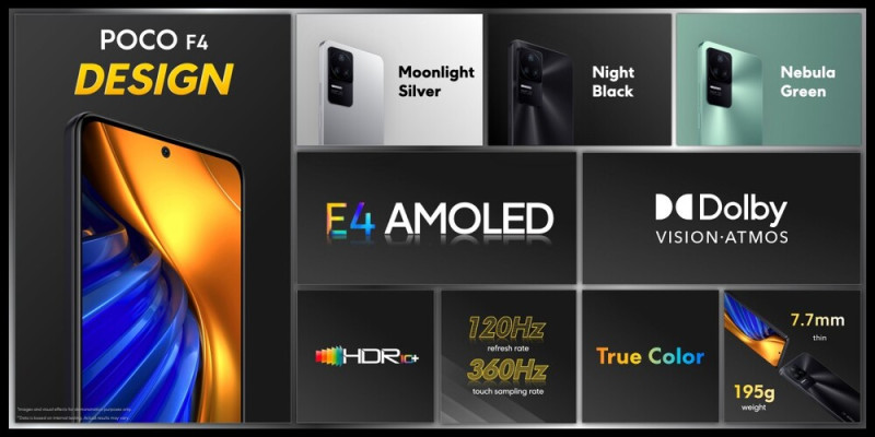 Hiába az AMOLED, az ujjlenyomat-leolvasó a kijelző helyett a keretben kapott otthont, itt is két hangszóró van Dolby Atmos támogatással, de a 3,5 milliméteres fülhallgató csatlakozóról itt le kell mondani. Legalább az infraport megmaradt itt is.Jutott Wi-Fi 6 (ax), de Bluetoothból csak 5.2-es van, illetve adott az NFC. A műanyag ház 163,2 x 75,95 x 7,7 milliméteres, a telefon 195 grammot nyom. Szürke, fekete és zöld színben lesz elérhető, az értékesítés ugyanúgy zajlik majd, mint az X4 GT esetén, csak más árakon. A Poco F4 alap változatáért (6/128 GB) 400 eurót kér el a gyártó, az erősebb modell (8/256 GB) már 450 euróba kerül. Július 7-től az árak 50 euróval nőnek majd. Mindkét telefon MIUI 13-mal indul útnak.