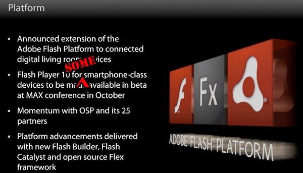 Az Adobe hivatalos fórumán is megerősítést nyert, hogy nem csupán a Windows Mobile 6.5 marad Flash 10.1 támogatás nélkül, hanem minden olyan Android alapú készüléknek is nélkülöznie kell majd a lejátszót, melyek nem ARMv7 alapú processzor (ARM Cortex-A8, Qualcomm Snapdragon, TI OMAP3 stb.) használ. Jelen pillanatban ez rengeteg modellt érint, a kivételt gyakorlatilag a Google Nexus One, a HTC Desire, az Acer Liquid, a Motorola Milestone és a hamarosan megjelenő Sony Ericsson Xperia X10 képzi. A döntés hátterében valószínűleg a Google módosított Java virtuális gépének korlátai állhatnak, bár a PC Magazine értesülései szerint valószínűleg mindenütt a legalább Cortex-A8 vagy azzal ekvivalens utasításkészletű és sebességű processzor lesz a minimális rendszerigény. Egyelőre nem tudni pontosan, hogy a hamarosan piacra kerülő Snapdragon alapú Symbian^3 készülékek számára elkészül-e az Adobe Flash 10.1 lejátszója, de nem lehetetlen, hogy csak a MeGoo alapú Nokiák lesznek majd képesek a teljes Flash tartalmak megjelenítésére.