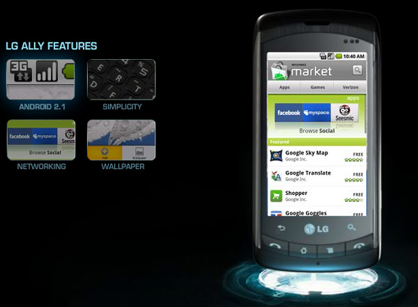 A számos pletyka után végül az LG is leleplezte új Android 2.1 alapú QWERTY csúszkáját, melynek pontos specifikációja továbbra sem ismert, de a weboldal a számos kép mellett azért néhány hírmorzsával is kecsegtet. Az LG Ally 3,2 hüvelykes érintőkijelzőt, hátoldali kamerát, microSDHC kártyafoglalatot és számos előre telepített Iron Man 2 tartalmat kapott. A folyamatosan frissülő adatlap várhatóan egyre több részletet árul majd el a készülékről, mely első ránézésre nem a csúcskategória leigázására készül. További információ a telefon hivatalos oldalán található.