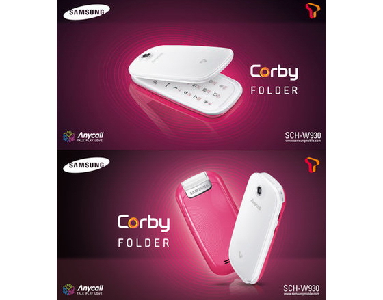 A komoly megjelenésű fekete és ezüst, valamint a nőies virágmintás és csillogó telefonok mellett a Samsung egy fiatalokat megcélzó, telt színekkel operáló termékvonallal is rendelkezik a Corby sorozat képében, mely érintőkijelzős és teljes QWERTY gombsorral szerelt ajánlatait hamarosan egy kagyló mobil teszi majd teljessé. A Corby Folder a sorozat névadójától eltérően nem rendelkezik érintőkijelzővel, ám 2,6 hüvelykes, 240x320 képpontos megjelenítője mellé 3 megapixeles kamerát, DMB tévévevőt, microSDHC kártyafoglalatot és előlapi kamerát is kapott a 3G videóhívások számára. Az először Dél-Koreában debütáló jövevény várható ára egyelőre nem ismert.