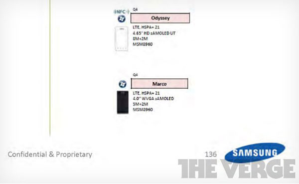 A The Verge birtokába jutott bizalmas belső dokumentumok szerint a Samsung idén két Windows Phone 8 modell leleplezésére készül, melyek közül az egyik felszereltségével, a másik pedig vételárával jelenthet vonzó alternatívát. A jövevények közös jellemzője az 1,5 GHz-es kétmagos Qualcomm MSM8960 processzor lehet, melyet a dél-koreai gyártó jelenleg is előszeretettel használ a 4G LTE hálózatokhoz tervezett készülékeiben. Az „Odyssey” belső néven fejlesztett nagyobbik testvér ezen túlmenően 4,65 hüvelykes HD Super AMOLED érintőkijelzőt és NFC modult is tartalmaz, mely utóbbi természetesen a Microsoft mobil pénztárca szolgáltatásával is kompatibilis lesz. A kisebb és várhatóan jóval kedvezőbb „Marco” viszont a takarékosság jegyében a kis hatótávolságú rádiós modulról és a HD megjelenítőről is lemondott, vagyis a jelenlegi Windows Phone 7 termékpaletta számos tagjához hasonlóan 4 hüvelykes, 480x800 képpontos Super AMOLED panelt kapott. Az utolsó negyedévben érkező Samsung mobilok várható ára egyelőre nem ismert.