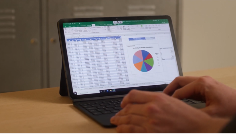 Az irodai munkakörnyezetben használt Microsoft szoftverek androidos verzióján kívül a programok kibővített funkcionalitással állnak rendelkezésre a DeX asztali nézetben, ami egyébként már Type-C kábellel is elővarázsolható, a Note20-szal kezdve pedig vezeték nélkül is tudnak kapcsolódni a készülék a külső megjelenítőhöz. Az S szériás táblagépek esetében a Galxy Tab S5-től a DeX magán az eszközön is opció, szintén minden Office alkalmazással, lebegő és átméretezhető ablakokkal, Windows billentyűparancsokkal. A Microsoft365 tárhelyet és levelezést is biztosít, a Teams pedig megfelelő platform a céges kapcsolattartásra.