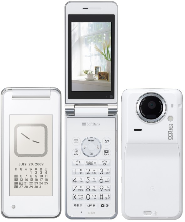 Japanese Softbank has recently announced its product range for this summer, which features a 3G digital photo frame, a WWAN laptop, a Bluetooth watch and several special mobile phones as well. It seems that Sharp will be the one to have the most exciting offers this year, as besides the model with a 10 megapixel CCD camera, they have also launched two clamshells with IPX7 water-resistancy certificate, each of these having an 8 megapixel camera and a 3.2" WVGA display. Sharp 934SH, coming with a 3" external eInk (or "memory LCD") display has a built-in UV sensor too, which can warn the user if the sunbathing is becoming dangerous. Sharp 936SH Solar Hybrid doesn't only sense, but also make us of sunrays, thanks to its built-in solar cell: 10 minutes in the sun makes the talk time 2 minutes longer. Sharp 934SH, featuring a "memory touchscreen" is coming in June, while 936SH is set for release in August, both being launched unfortunately in Japan only.