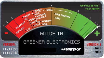 Electronic products practically overflow our life and many of them pollute the environment not only as trash, but they mean a serious burden for nature, already during their fabrication process. During the survey from Greenpeace, that includes the whole life-cycle, Sony Ericsson and Sony have been the only ones to reach at least a score of 5 out of 10, while previous leader Nokia has fallen back a lot. The Greenpeace survey, that will be a quarterly from now on, doesn't only analyze the fabrication process, but it takes the product's whole life-cycle into account, up to its recycling or professional destruction.