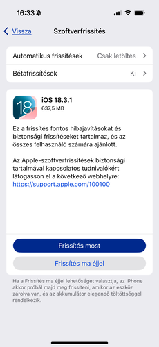 Hétfőn elérhetővé tette az Apple az iOS és iPadOS 18.3.1 rendszerek publikus változatát. A leírás nem túl bőbeszédű, a szokásos “a frissítés fontos hibajavításokat és biztonsági frissítéseket tartalmaz” szöveg olvasható csak benne. Az Apple a weboldalán viszont valamivel bőbeszédűbb, és részletezi, hogy mire vonatkozik ez a hibajavítás.