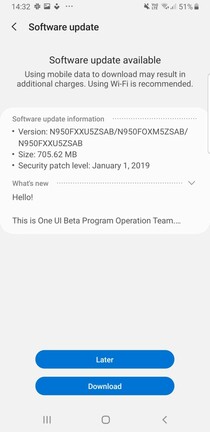Az Android 9-cel teljesen új felhasználói felület is érkezik a Galaxy készülékekre, a One UI-ra való átállás azonban nem zökkenőmentes. A Note8 esetében adódtak problémák a microSD-re való másolással és az ott tárolt tartalom elérésével, illetve a kiegészítő tárhelyre való mentéssel a Samsung böngészőjéből. A kamera hajlamos volt kényszerleállni, ahelyett, hogy elindította volna a lassított videofelvételt, de volt, aki már a PIN kód megadása után teljes rendszerösszeomlással találkozott.
