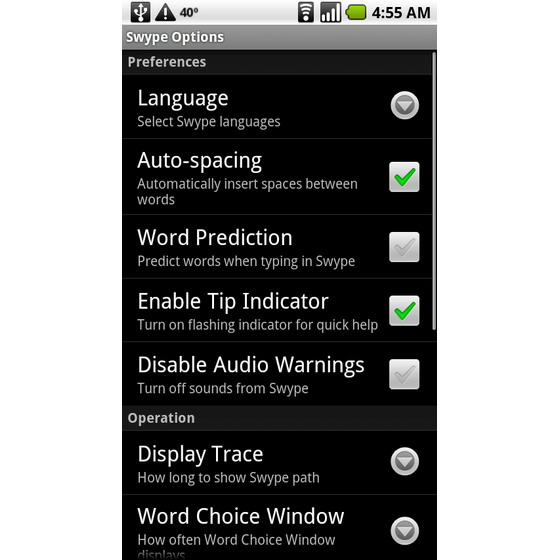 Az ujj felemelése nélküli szövegbevitelt kínáló Swype egyelőre ugyan nem hivatalosan, de már elérhető WVGA kijelzővel szerelt Android alapú készülékekre, de hamarosan kisebb felbontású megjelenítővel szerelt eszközökre is elérhetővé válhat. A Windows Mobile alapú Samsung Omnia II készüléken már hivatalosan is elérhető megoldás átirata, az alant látható videó tanúsága szerint Android alapú eszközökön is gond nélkül használható, vagyis a szövegbeviteli megoldás rövidesen az alkalmazásboltba is bekerülhet, illetve ha a Google vagy az Open Handset Alliance úgy látja, akkor az Android platform szerves részévé is válhat.