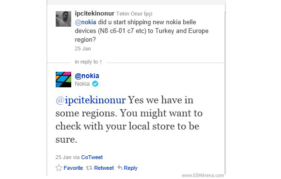 A finn gyártó korábbi bejelentésének megfelelően Indiában és Törökországban már Nokia Belle operációs rendszerrel kerülnek forgalomba a korábbi Symbian^3 mobilok, melyet követően a hivatalos szoftverfrissítések is rövidesen elérhetővé válnak. A Nokia N8, E7, C7, E6, X7, C6-01, 500 és Oro szoftverének legfrissebb változata országonként és modellenként eltérő időpontban válhat elérhetővé, de erre várhatóan még a Mobile World Congress kezdete előtt sor kerülhet. A Nokia Belle néven kiadott platform néhány modellen már jelenleg is elérhető, ám a korábbi változatok frissítése a gyengébb processzor és kevesebb memória miatt több szoftveres finomítást igényelt.