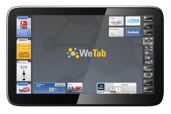 Az eredetileg WePad néven bemutatott német internettábla néhány apróbb átalakítás után végül WeTab néven lesz megvásárolható idén szeptembertől, méghozzá az Apple üdvöskéjéhez hasonlóan kétfajta kivitelben. A 449 eurós, azaz bruttó 125.000 forintos modell csak 16 GB belső memóriával bír és WLAN átvitelre képes, míg az 569 eurós, azaz 159.000 forintos kiadás HSPDA modemmel, GPS vevővel, 32 GB belső memóriával és 1080p felbontású anyagok lejátszását is támogató HDMI kimenettel is rendelkezik, vagyis az Android Market eléréséhez szükséges összes feltételnek eleget tesz. A 11,6 hüvelykes, 1366x768 képpontos kapacitív multitouch érintőkijelzővel, 1,3 megapixeles webkamerával, 1,66 GHz-es Intel Atom N450 Pineview-M processzorral, 1 GB RAM-mal, 16 vagy 32 GB belső memóriával, SDHC foglalattal, 2 USB csatlakozóval, WLAN (802.11b/g/n) és sztereó Bluetooth 2.1 modullal és 6 óra üzemidőt biztosító akkumulátorral is felszerelt készülék számos különböző alkalmazásbolt elérésére is alkalmas, így natív Linux, Android, Java és Adobe AIR alkalmazások, valamint widgetek futtatása is képes. Az e-könyvek és e-folyóiratok elérést is biztosító 295x195x15 milliméteres és 800 illetve 850 grammos WeTab magyarországi premierjének időpontja egyelőre nem ismert. További információ és részletes termékbemutató a WeTab saját oldalán található.