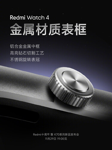 Szintén új, hogy az óratest alumíniumból lesz, elsőként a Redmi okosóráki közül, illetve a jobb oldalon a szimpla nyomógombot tekerhető fém korona váltja. Az óratok vízálló lesz (5 ATM), az óraszíjak pedig cserélhetők lesznek. A képek alapján a standard 22 milliméteres csatlakozást használja majd a Redmi Watch 4, mely gyárilag fém, bőr, szövet és szilikon szíjjal lesz elérhető.