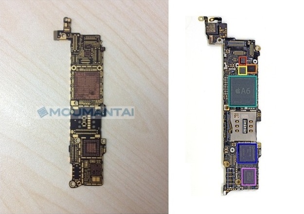 A Macotakara jóvoltából került napvilágra az iPhone 5S állítólagos lapkája, mely alapján egyelőre nagyon úgy tűnik, hogy dizájn terén lényegi változtatásokra nemigen lehet számítani. A csavarfuratok elhelyezésétől eltekintve az elődjével szinte teljesen azonos chipelrendezés a külső dizájn és kijelzőméret megőrzésére utal, persze ez egy „S” jelzésű modell esetén egyáltalán nem meglepő. A nyomtatott áramkör nem tartalmazza a processzort, de a teljesen azonos tokméret miatt valószínűleg az A7 processzorok továbbra is 32 nanométeres gyártástechnológiával készülnek majd, vagyis a TSMC 28 nanométeres technológiájára való átállás valószínűleg csak jövőre várható. Az elmúlt hetek során számos egyéb komponens is napvilágra került. Nemrég például a SIM fiók árulkodott egy aranyszínű változat érkezéséről, mely mellett az új előlapi kamerát is lencsevégre kapták.