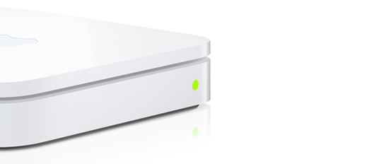 Az Apple nagyobb tudású routerének kialakításakor már nem a hordozhatóság volt a fő szempont, amit jól mutat a 165 x 165 x 34 milliméteres kiterjedés és a 753 grammos tömeg. A cucchasonlóan néz ki, mint az előző generációs Mac mini (alapterülete ugye pontosan akkora is), csak kicsit alacsonyabb annál. Műanyagból van, fehér színű, nagy alma logó virít a tetején, oldalt fut rajta egy vájat, melynek funkciója nem ismert (lehet, hogy az antennát rejti) és szerintem nem néz ki túl jól. Elöl egy méretes led jelzi, hogy milyen állapotban van épp az eszköz (értsd: be van-e kapcsolva, netán épp indul), ami nyilvánvalóan hasznos. Nekem mondjuk nem tetszett, hogy egy tényleg nagyon méretes ledről van szó, ugyanakkor tény, hogy az Apple lehagyta a routerek többségén megtalálható ledeket, tehát így is elég minimalista a cucc, ami klassz.
