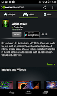 Alapvetően egy gyakran frissülő ajánlóról van szó, mely a játékok szerelmeseit célozza meg, az ilyen jellegű mobilos tartalom krémjét felvonultatva. Ebben egyébként remekel, segítségével az ember folyamatosan képben lehet az aktuális játékmegjelenésekkel. Ráadásul szelektált tartalomról van szó, azaz a listában nem szerepel az ezredik Space Invaders klón, a kínálat egytől egyig friss és igényes (és általában fizetős) szoftvereket tartalmaz. Ezek mellett a kapcsolódó híreket is megjeleníti, melyekről értesítés formájában is tájékoztatja a felhasználót, amennyiben a funkció engedélyezve van. Kicsit zavaró viszont, hogy ha az ember nem Tegrával szerelt készülékkel próbálkozik, a program lépten-nyomon figyelmeztet erre, ám a játékokat természetesen be lehet szerezni más lapkakészlettel szerelt eszközökre is.