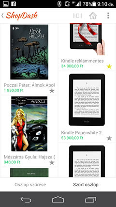 Nyilván az a kérdés, hogy a ShopDash előtt milyen lehetőségek vannak. Egyrészt - s ezt nem győzte eléggé hangsúlyozni a fejlesztői csapat - ez nem egy árösszehasonlító oldal, ez egy katalógus. Azoknak a cégeknek a termékei vannak benne, akik megállapodtak a ShopDash-sel. Másrészt nincsen webes felület, ez egy szigorúan mobil eszközökön elérhető, színes-szagos katalógus. Olyan, mint amilyen papíron az IKEA, az Otto, vagy éppen a Quelle, csak itt sokkal többféle termék akad. Ráadásul a fejlesztők azt vették észre, hogy a legtöbb hasonló, nemzetközi megoldás elsősorban a divatra fókuszál, ékszerek, órák, ruhák, táskák, kiegészítők akadnak más alkalmazásokban, míg a ShopDash nem akar csak egyetlen terület köré építeni, már most is vannak elektronikai cikkek, könyvek, játékok és italok is.