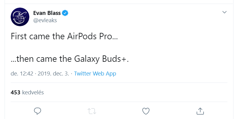 A Samsung koreai honlapján már készen is van az SMR-175 modellszámú eszköz terméktámogatási oldala, ami a kódnévből ítélve nyilvánvalóan a Galaxy Buds új generációját jelenti. Evan Blass Samsung Galaxy Buds+-ként hivatkozik a fülhallgatóra, és a rendkívül rövid Tweetben megemlíti az Apple AirPods Prot.