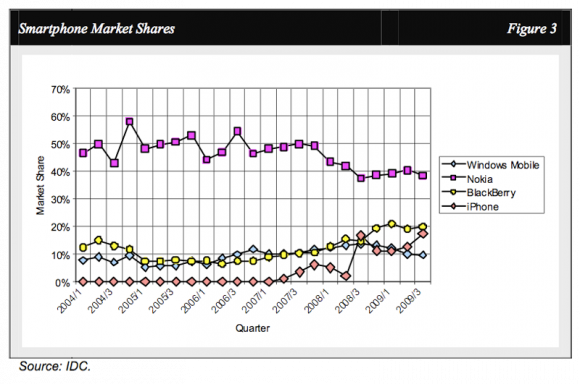 Az Apple iPhone komoly változásokat hozott az iparág számára, hiszen a relatíve gyenge kamerája, és a kategóriájában ma már átlagon aluli felbontásúnak számító kijelzője ellenére, a kényelmes és gyors menürendszere, méretes kijelzője, hatalmas memóriája és a rengeteg partnerre épülő üzlet modellje révén a piac legsikeresebb okostelefonjává nőtte ki magát, mely újabbnál újabb eladási rekordok megdöntésére is képes. A tajpeji székhelyű Market Intelligence & Consulting Institute a beszállítói statisztikákból kiindulva arra a következtetésre jutott hogy az év utolsó negyedében az iPhone forgalma átlépheti a tízmilliós álomhatárt is, mely eddig csak lényegesen olcsóbb mobilok esetén volt elképzelhető.