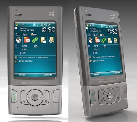 General Mobile announced their new communicator, the SDTW1, which differs of conventional smartphones mainly because it has dual SIM slots. Considering other aspects, the phone doesn’t really excel. The Windows Mobile 6 Professional OS-based smartphone’s one SIM card supports GSM 850/900/1800/1900 MHz, while the other functions on GSM 900/1800/1900 networks. Its 2.8” QVGA 65K color display is touch operated, it has a 2 megapixel camera and the 256 MB built-in memory can be extended with a microSD card. Unfortunately there is no 3G or WLAN support, only GPRS and EDGE, as well as Bluetooth for personal area networking. There is no exact information about the phone’s processor, but one thing is sure: the size of the RAM is only 64 MB. The 117 x 61 x 18 mm large handset, weighing 144 grams might come out in March 08, however we’ve got no word on pricing.