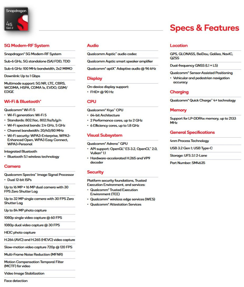 Holnap mutatkozik be a új, belépő szintű, 5G-s megoldása, ami tudásban valahol a Snapdragon 4 Gen 1 és Gen 2 között helyezkedik el. A lapka specifikációját Evan Blass tette közzé az X-en, így nem sok meglepetés maradt a holnapi eseményre. A 4s Gen 2 alacsonyabbra skálázott processzormagokkal és lassabb 5G modemmel a belépő szinten lesz opció a gyártók számára.
