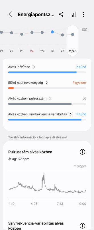 Már a felsorolt modellek is tájékoztatni fognak az Energiaszintről, aminek értékét egy intuitív pontszám adja, amelyet a funkció négy különböző egészségügyi mérőszámból, az Alvásból, az Aktivitásból, az Alvási pulzusszámból, és az Alvási pulzusszám-variabilitásból számít ki. A Galaxy AI-nak köszönhetően a felhasználók személyre szabott üzeneteteket kaphatnak, amelyek segíthetnek javítani a közérzetüket és vitalitásukat.