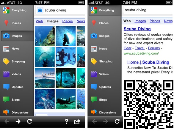 Komoly frissítésen esett át a Google Search iPhone-ra szánt változata, mely az igény szerint előcsalogatható oldalmenüjének köszönhetően a célirányos keresést is jóval egyszerűbbé és átláthatóbbá teszi. A képernyő bal oldaláról előhúzható eszköztár segítségével a fotók, videók, blogok, helyek és termékek keresése mellett a beszédhang és kamerakép alapú keresési módszerek is rendelkezésre állnak. A Google Search frissített változata az App Store alkalmazásboltból tölthető le.