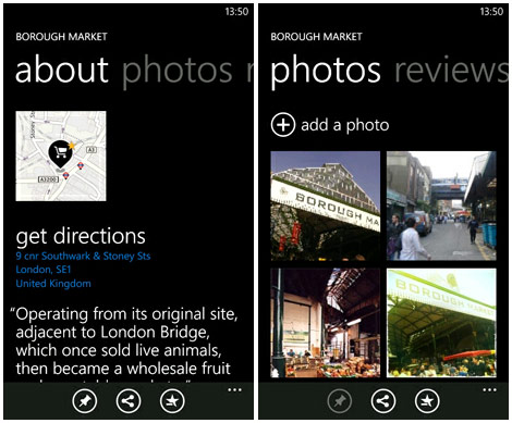 Az utóbbi időben a Nokia igencsak „ráfeküdt” a helyfüggő szolgáltatásokra, hiszen azok már nem csak saját készülékeivel és számítógépekről, hanem iOS és Android-alapú modellekről egyaránt elérhető, igaz, egyelőre csak böngészőben futó webes alkalmazásként a m.maps.nokia.com címen. A legfontosabb funkciókat persze a finn gyártó a saját készülékeire tartogatja, így a Lumia sorozatra szánt Nokia Maps is számos kellemes újdonsággal bővült. Az egyik legfontosabb a látnivalókkal kapcsolatos vélemények és fotók megosztásának lehetősége, mely mellett a kedvenc helyszínek saját eszközök közötti szinkronizálása is automatikussá vált. Az egyik legkényelmesebb újdonság azonban a megtervezett utak külön csempeként való elmentése lehet, mely révén a végcélhoz vezető út és a hangos navigáció egyetlen kattintással elérhető. A Nokia Maps legújabb változata a Windows Phone Marketplace online piactéren érhető el a Nokia gyűjteményben.