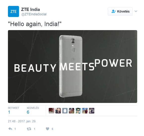 A ZTE India hivatalos Twitter csatornáján tett közzé egy bemutató videót, amiből ugyan sok minden nem derül ki, leszámítva az erő és a szépség valamilyen kapcsolatát az üzemidővel, legalábbis a bal felső sarokban lévő grafikából következtethetünk arra, hogy az akksi lényeges paraméter lehet. Valamint, hogy hamarosan érkezik. Indiába. A készülék valószínűleg a ZTE által február 3-án megrendezésre kerülő eseményen mutatkozik be.