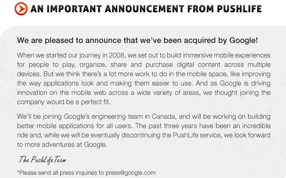 Egyre biztosabbnak tűnik, hogy idén a Google is elindítja saját zenei szolgáltatásait, melynek előszületeként nemrég egy újabb online zenei céget vásárolt fel, mely Android és BlackBerry alapú megoldásokon dolgozott. A kanadai székhelyű PushLife nem csak saját zeneboltot üzemeltetett, hanem natív telefonos kliensszoftvert is készített, mely a készüléken tárolt zeneszámok alapján képes hasonló előadókat és albumokat javasolni. A Facebook és Twitter integrációt is kínáló, iTunes és a Windows Media Player zenetárakkal is szinkronizálható PushLife szoftver valószínűleg a Google I/O konferencia során ismét felbukkanhat, de természetesen csak „álruhában”.