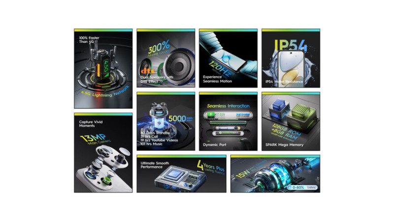 A termékoldalon azt írja a Tecno, hogy négy évnyi lagmentes használatra jó a Spark Go 1, ami megkérdőjelezhető a telefonban használt Unisoc T615-ös SoC okán. Két memória- és tárhelyopció van, 3/64 GB és 4/128 GB. A beépített akkumulátor 5000 mAh-s, töltést pedig 15 wattig támogat vezetéken át.