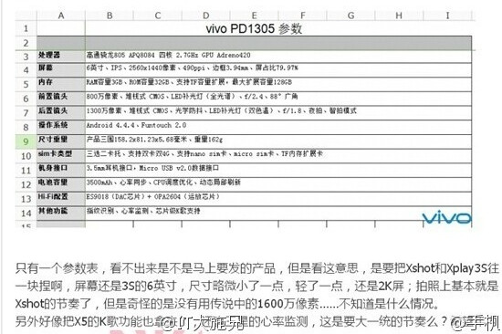 A Vivo mérnökei a mindössze 4,75 milliméter vastag X5 Max megalkotását követően sem ülnek sokat a babérjaikon, legalábbis kínai beszámolók szerint rövidesen egy újabb, igen kecses megoldás érkezésére lehet számítani, ám ezúttal a legfelső szegmensben. A hathüvelykes QHD, azaz 1440 × 2560 képpontos megjelenítővel rendelkező készülék a mérete és felszereltsége alapján az alant is látható Xplay 3S közvetlen utódja lesz, mely a piaci trendeknek megfelelően nagy felbontású „szelfi” kamerával is rendelkezik.