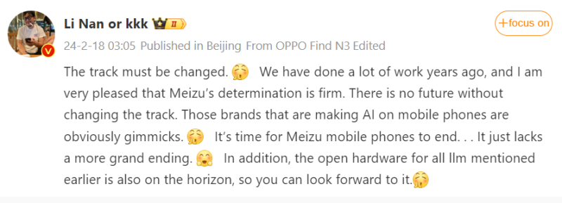 A Meizu Group vezérigazgatója, Shen Ziyu pár napja jelentette be, hogy a cég újra allokálja az erőforrásait és teljes kapacitással a mesterséges intelligencia fejlesztésére fókuszál. Teljes mértékben úgy lehetett érteni, hogy már a tavaly november végén bemutatott Meizu 21 pro verziójával sem vesződnek, a készüléket végül most mégis bejelentették.