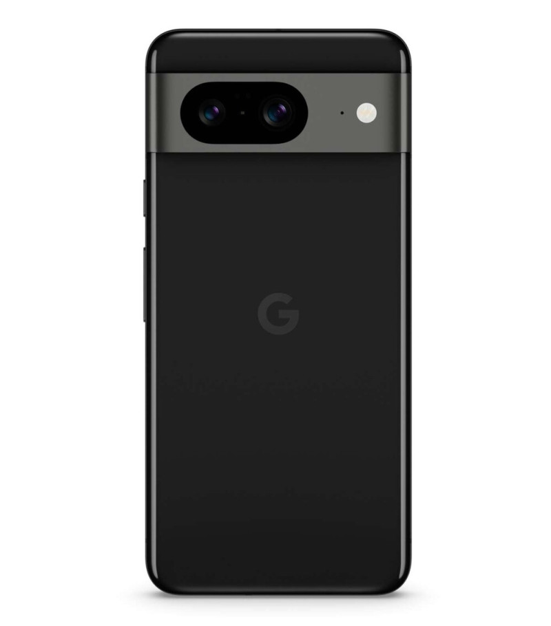 A Pixel 8 méretben és tudásban is szerényebb, 6,2"-re faragva elődje 6,3"-es képátlóját és 10 grammal könnyítve tömegét. A FHD+ felbontású Actua HDR OLED panel végre 120 Hz-es és akár 2000 nites fénysűrűségre képes kis területen, bár adaptív képfrissítésre nem. Ezt a modellt első generációs Gorilla Glass Victus védi. Ezúttal is 10,5 megapixeles az előlapi és 50 megapixeles a hátlapi főkamera, és most is szenzorzoommal kell beérni optikai egység helyett. A Pixel 8 a Pro 48 megapixeles ultraszéles kamerájáról is lemarad, de azért új 12 megapixeleset kapott autofókusszal és makrókészítés lehetőségével. A 4575 mAh-s telepet 27 és 15 watton lehet tölteni vezetékesen és vezetékmentesen.
