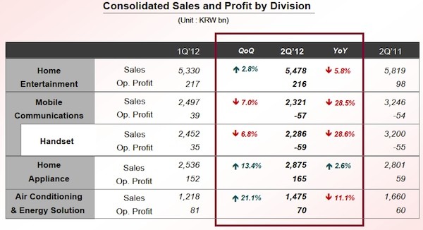 Az LG közleménye szerint a második negyedévben ismét veszteségesen üzemelt a telefonos részlege, mellyel együtt az eladások is folyamatos csökkenést mutatnak. Az áprilistól júniusig tartó időszakban összesen 13,1 millió mobiltelefont értékesített a kisebbik dél-koreai gyártó, mely negyedéves szinten 4 százalékos visszaesést jelent. A telefonos részleg 2 milliárd dollár árbevétel mellett 51,2 millió dolláros veszteséget termelt, vagyis egyelőre nagyon úgy tűnik, hogy az erős 4G LTE és 3D okostelefon termékpaletta sem hozta meg a várt áttörést. Az árbevétel kapcsán sajnos igen riasztó tendencia figyelhető meg, hiszen a visszaesés már negyedéves szinten is 7 százalékos, az előző évhez képest pedig 28,5 százalék feletti. Elemzők szerint az LG csak akkor szerezhet magának nagyobb piacokat, ha terméktámogatás terén is rákapcsol, hiszen a lassan érkező frissítések és kissé átláthatatlan termékstratégia miatt sokan inkább más gyártóknál próbálkoznak.