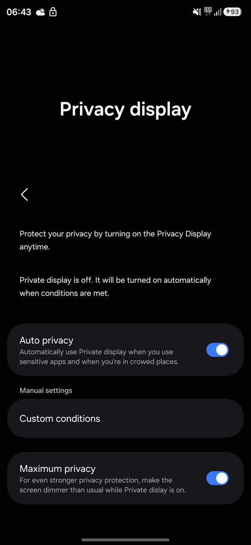 A demonstrációban egy „Zero-peeking” kapcsolóval aktiválják a módot, ilyenkor a kijelző a kíváncsiskodók felé teljes egészében elsötétül. Az érdekesebb rész viszont az, hogy a Samsung szerint a rendszer per-pixeles vezérlésre képes, vagyis nem csak „mindent vagy semmit” alapon működhet: akár kizárólag a kényes információkat tartalmazó értesítéseket is elrejtheti, miközben a képernyő többi része látható marad.