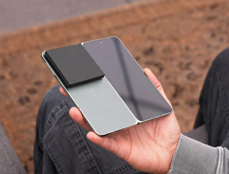 Eddig is hatalmas kameratárcsára számítottunk, és egy akkora habszivacs fedi a OnePlus Open néven várt foldable lencséit, hogy a hátlap felét kitakarja. De azért a OnePlus logó rendben látható és a márkavezér az interjúban elismeri: a készüléket az Oppóval közösen fejlesztették. A premierre várhatóan még októberben sor kerül.