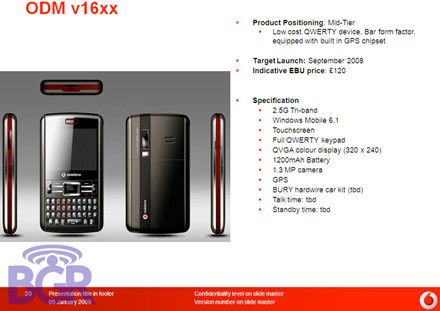 A Vodafone egyre több mobiltelefont forgalmaz az eredeti márkajelzés helyett saját neve alatt. Ha a képnek hinni lehet, akkor szeptember körül egy négytudású okostelefonnal fog gazdagodni a szolgáltató kínálata. A Windows Mobile 6.1 alapú mobiltelefon elég felemás specifikációval rendelkezik. Egyrészt van benne GPS, teljes QWERTTY gombsor és még egy 1,3 megapixeles kamera is, mely egy üzleti telefonban elégségesnek számít, másrészt azonban mindössze EDGE átvitelre képes, mely már most is kevésnek tűnik, nem hogy 2008 szeptemberében. Egyelőre persze nem tudni, hogy a specifikáció végeleges-e, mint ahogy azt sem, hogy egyáltalán van-e valóságalapja.