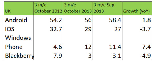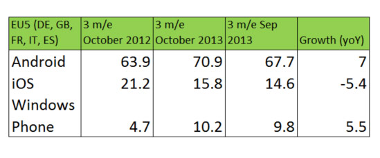 A Lumia 520 bejelentésekor a piaci elemzők jelentős terjeszkedést jósoltak a Windows Phone platform számára, hiszen a százdolláros árkategóriában erősnek számító hardver és a jól optimizált szoftver együtt kiemelkedő felhasználói élményt biztosít. A IDC után a Kantar legfrissebb beszámolója is megerősíteni látszik a korábbi jóslatokat, hiszen augusztus és októberrel között a Microsoft operációs rendszere Európa öt legerősebb országában 10,2 százalékos részesedést ért el az okostelefonok piacán. Az egy évvel ezelőtti 4,7 százalékos részesedéshez képesti jelentős előrelépést elsősorban az iOS és a BlackBerry platformok rovására érte el a Microsoft. A kanadai gyártó jelenléte még a legfontosabb európai bázist jelentő Egyesült Királyságban is megrendült. A japán okostelefonok piacának 76,1 százalékát uraló Apple piaci részesedése az "Öreg Kontinensen" meredek esésbe kezdett, mely az iPhone 5c és 5s vártnál jóval gyengébb szereplésével indokolható.