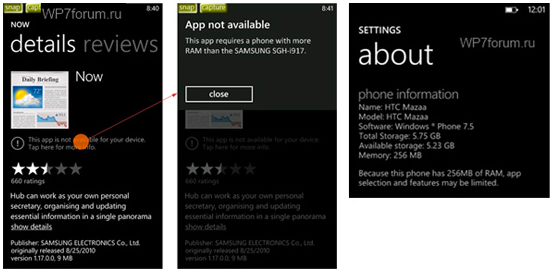 A Windows Phone Tango platform legfőbb célja az alacsonyabb árszegmensbe való betörés lesz, mely természetesen kompromisszumokkal jár, de szerencsére nem a kezelőfelület gördülékenységét illetően. A WP7forum.ru oldal szerint az új platform 3 megapixeles kamerával is 256 MB RAM-mal is beéri, legalábbis az alant látható képernyőfotók tanúsága szerint a Windows Phone Marketplace már képes figyelmeztetni arra, ha a letölteni kívánt alkalmazás több operatív memóriát igényel. Az orosz oldal szerint a Windows Phone Tango már több oldalas MMS prezentációk, illetve hang MMS-ek küldésére is képes lesz, valamint a belső telefonszámok SIM-re történő exportálása, valamint a belföldi és nemzetközi roaming kezelése is megoldott lesz. Az új platform leleplezésére a közelgő Mobile World Congress során kerülhet sor.