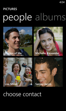 További újdonság, hogy a fényképeken immár be is jelölhetjük az ismerőseinket, azaz a Facebook tagelési funkcióját is beépítették a rendszerbe. Bár nem tartozik szorosan a témához, de az integráció hasonló méreteket ölt az átdolgozott telefonkönyvben is. A People Hub névjegyeire kattintva immár a partnerekhez tartozó összes albumot elérhetjük, beleértve a közösségi szolgáltatásokhoz kapcsolódó mappákat is; de természetesen ehhez az is szükséges, hogy az adott emberkét összekössük a Facebook-fiókjával.