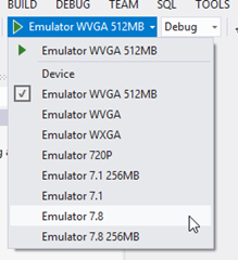 - Windows Phone 7.8 emulator 256 MB: build 8858-as rendszer, 256 MB RAM-os készüléken.