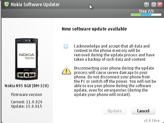 A Nokia szoftverfrissítés szolgáltatásán elérhető legújabb, N95 8GB 15.0.015 szoftver tartalmazza egy Flash Lite 3 lejátszót, mely teljes egészében YouTube videó kompatibilissé a készülék belső böngészőjét. A felhasználói visszajelzések alapján az új szoftver működése is jelentősen gyorsabbá vált. Míg korábban a PC Suite „Image Store” képlementő funkciója során a teljes 8GB belső memória végigböngészése percekig is eltartott, addig az új szoftver segítségével ez az idő fél perc alá csökkent. A Galéria és a Nokia Search alkalmazások is lényegesen gyorsabbá váltak, ugyanis korábban ezek minden belépéskor végigpásztázták a memóriát, míg az új szoftver csak a legelső belépéskor ellenőrzi a fájlokat, majd memóriában őrzi a szükséges listákat.