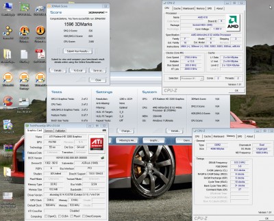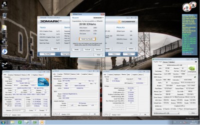 Cpu-z cpu ablak,Cpu-z memória ablak,Gpu-z ablak,3dmark teszt eredmény