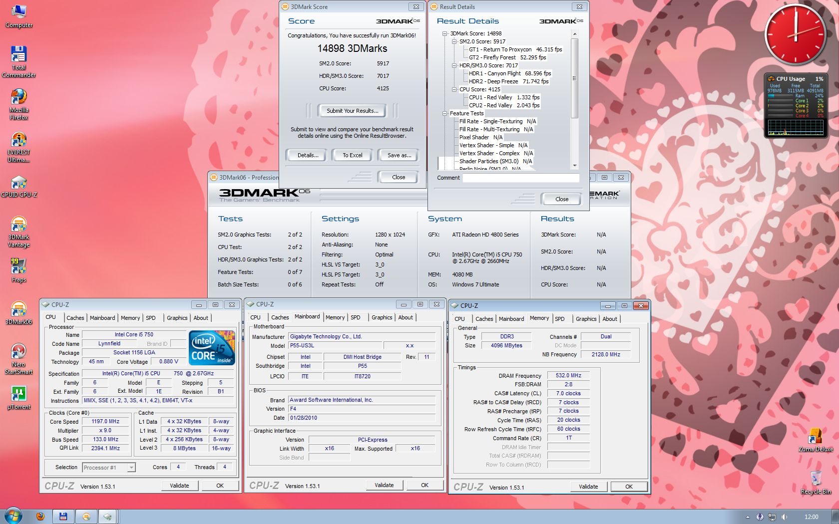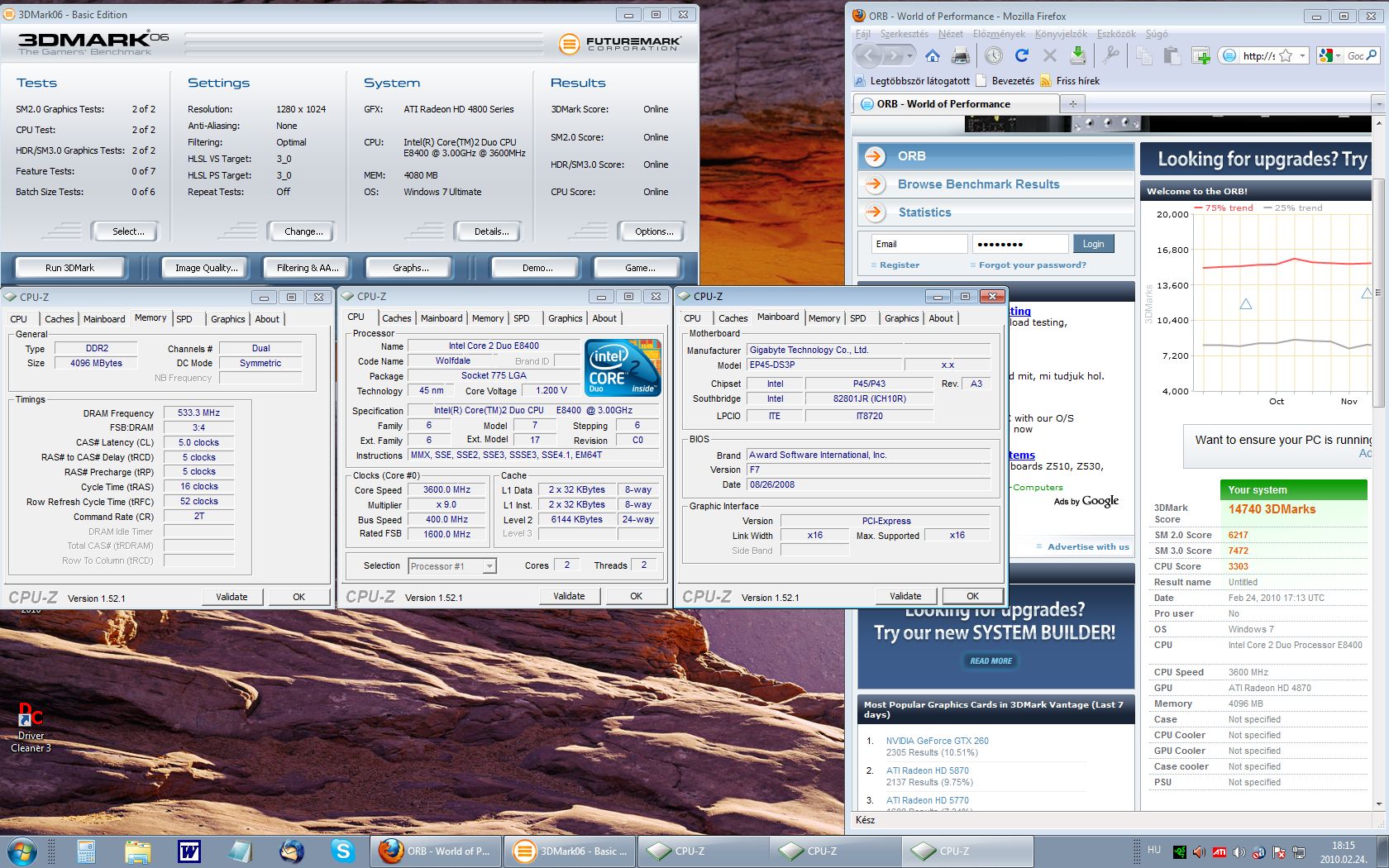 Sziasztok! A gépem : p55 ud3,i5 750 2.66,hd5850,4GBRAM. 3dmark06 eredmény:18560. Op.rendszer Windows7 Minden alapbeállitáson.Szerintem kevés,de miért?