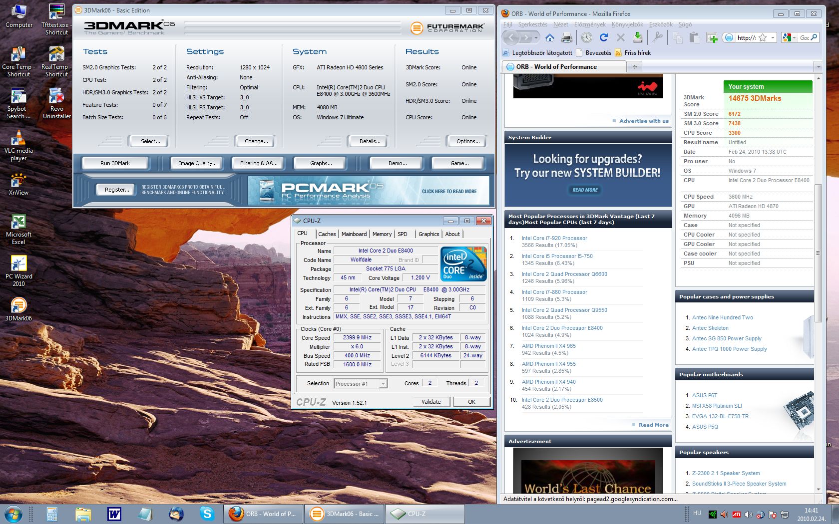 Egyebkent azt hittem hogy a 460W volt a korlat, hat elmondom nem az volt....ez a kis 460W-os Zalman tuningolva elvisz egy 4 magos 965-ot 4400Mhz-en !! meg 4 G RAM-ot 1800Mhz-en !! meg egy HD 4870-et 859 Mhz GPU illetve 4284 Mhz memoria tuninggal, az 1KW-ostol sem stabilabb nem lett a rendszer, ill nagyobb OC-ot sem lehetett elerni, Vantage-ben alapon egy par ponttal tobbet kaptam de slussz. Tehat a fenti adatok a rendszer korlatjai az adott kornyezeti homersekleten. Ha valahogy be lehetne uzemelni masodik tapkent, lehet hogy el sem adnam. Valaki segitsen.