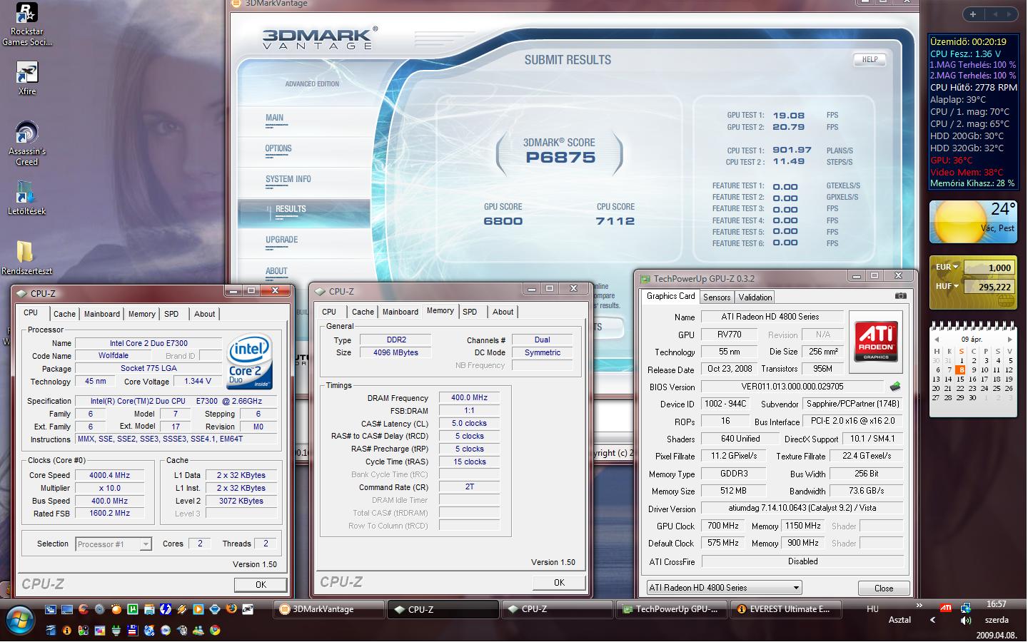 A második CPU-Z ablak nem az igazi, majd javítom. Azért szépen befutott az E8400 negyediknek