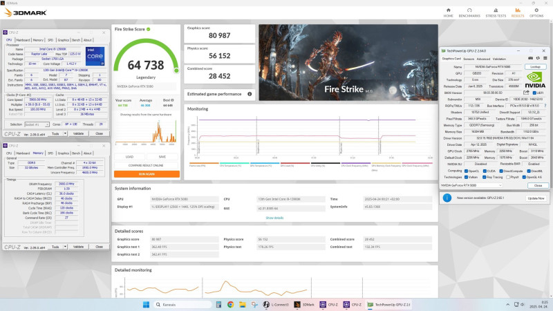 5080: gyári hűtő, core +470, mem+3000 (gpu core max 3307Mhz)