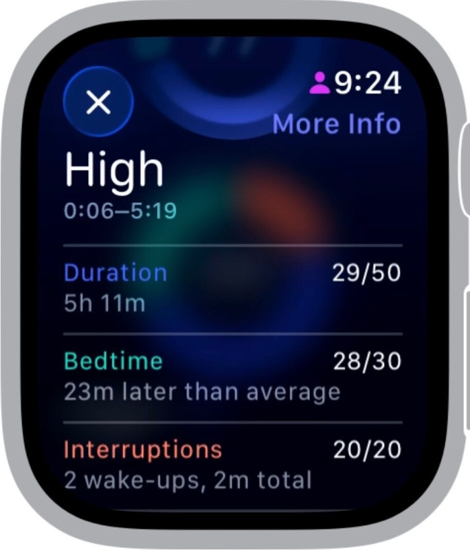 Az Apple pontozási rendszerét nem ismerem. És lehet tényleg rosszul működik. Viszont szerintem az 55 perces mélyalvás több mint amit egy medián felnőtt összeszed. Ha jól nézem az interruptions is összesen 2 perc volt? Nézd meg egy random ember alvási adatait, folyamatos piros (narancs) csíkok vannak az alvásban.